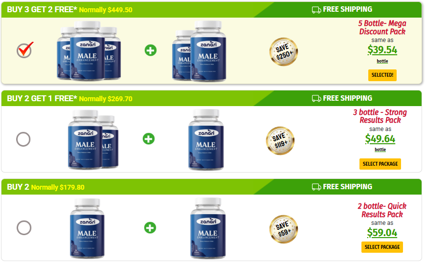 **Zanari Male Performance Supplement**: This is the official and secure purchase link. Get the best value deal: the 5-bottle bundle is available for only **$199.50**, a huge **$250 discount** (55% OFF) from the regular price of $449.50. Other deals include the 3-pack for $150.70. All orders include **Free Shipping**, **Discreet Delivery**, and a **30-Day Guarantee**. Do not miss this official site exclusive pricing! + FDA Aproved + Buy 2, Get 1 Free + Save $119 + Buy 2 And Save $59 + Free Ship